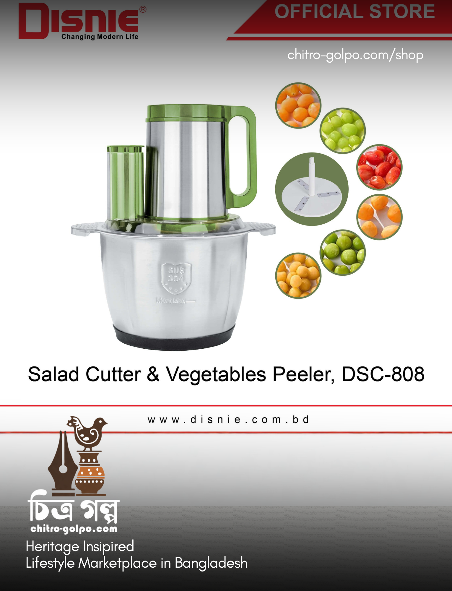 Disnie 6in1 DSC-808 Salad Cutter & Food Chopper With Fruits Peeler 5.5L